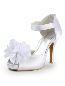 ElegantPark Women Peep Toe Rhinestones High Heel Satin Wedding Bridal Pumps