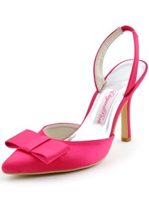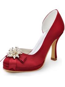 HC1804 Round Toe Spool Heel Satin Slip On Bridal Ribbion Wedding Party Shoes