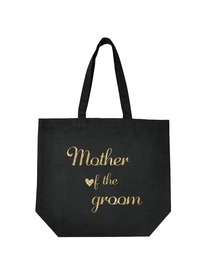 ElegantPark Mother of the Groom Tote Bag Wedding Gifts Black 100% Cotton with Gold Script